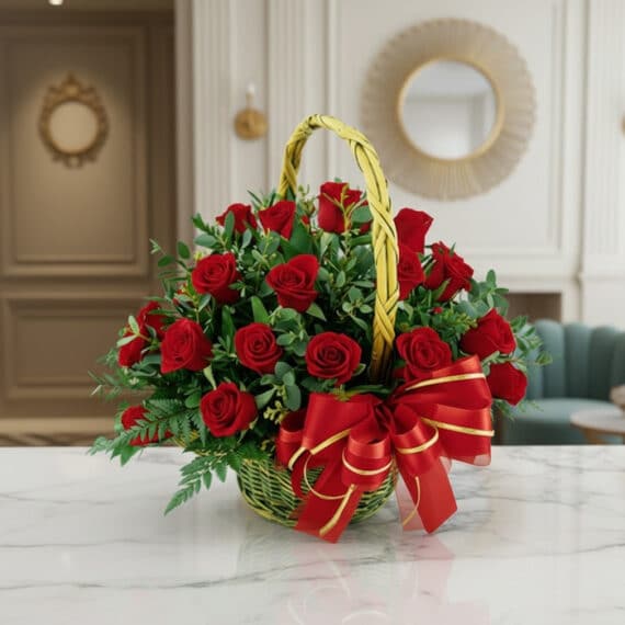 Deja fluir todo el amor que tienes por ella y hazle saber cuánto la quieres enviándole esta hermosa Canasta Floral con 24 Rosas con