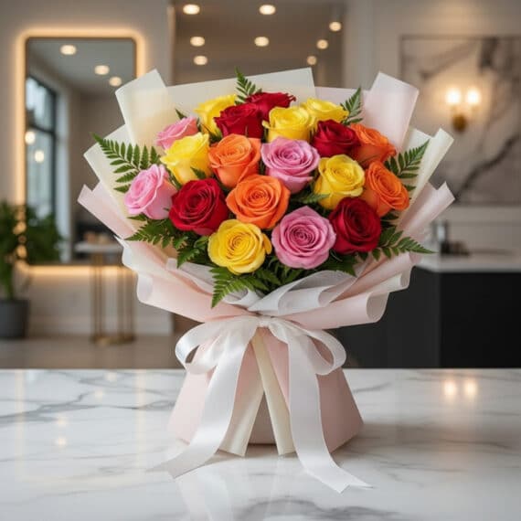 16 valoraciones en Ramillete o Bouquet de Rosas Multicolor